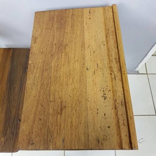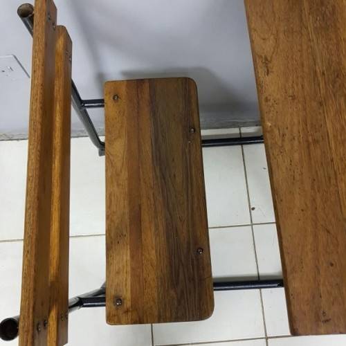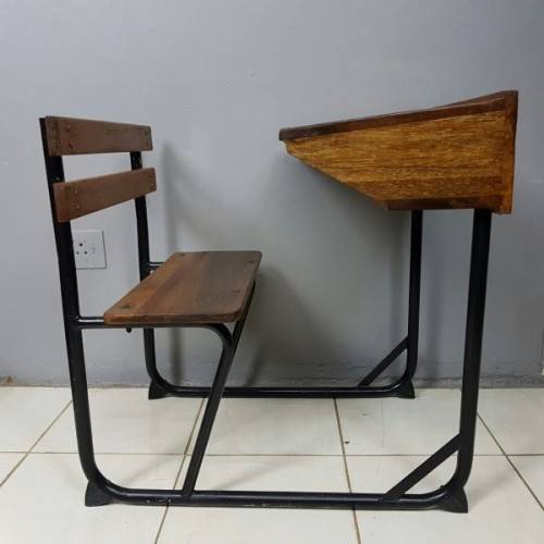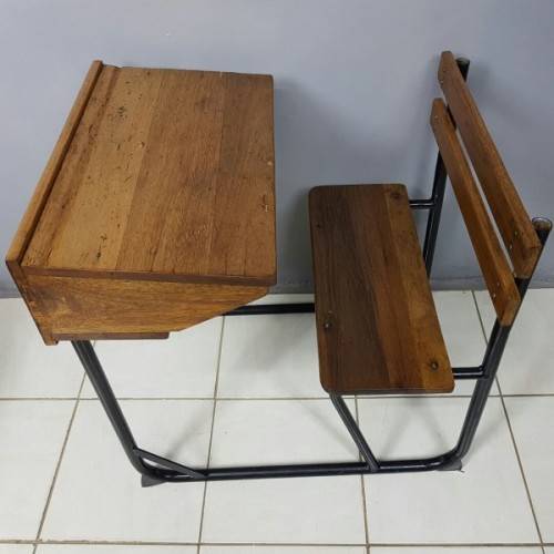 This awesome vintage/ antique? solid teak school desk is in wonderful condition and has a sturdy metal frame and a storage shelf below the writing top. These old school desks are becoming more and more scarce so if you do not have one, now is your chance!!! The size of the desk 84cm front to back x 66cm long x 85cm high. They are perfect for a child's play room or bedroom or even as a feature piece in a living area. There is normal age and usage related wear and tear. Please view the pics carefully to fully appreciate this fabulous old school desk and to confirm the condition.