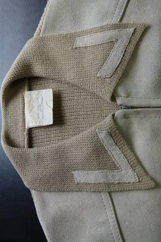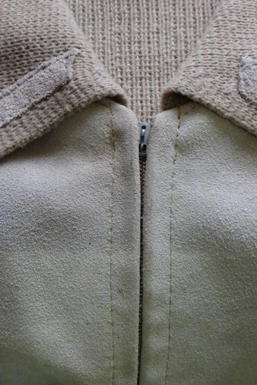 THIS AWESOME VINTAGE (c1970's) "DINO CEZARE" MENS SIZE LARGE TAN SUEDE AND KNITWEAR JACKET IS IN AWESOME CONDITION WITH MINIMAL AGE AND USAGE RELATED WEAR AND TEAR. THE ZIPPER PULLER HAS BROKEN OFF, BUT THE ZIPPER STILL WORKS. THE VALET IS NOT INCLUDED.