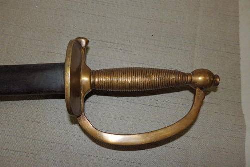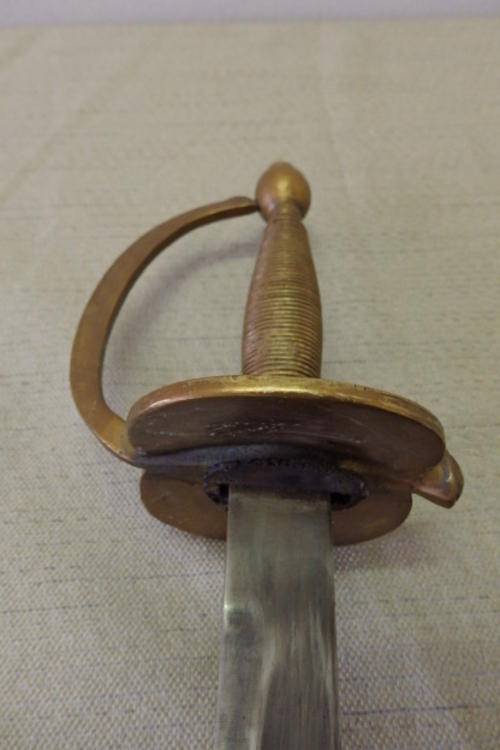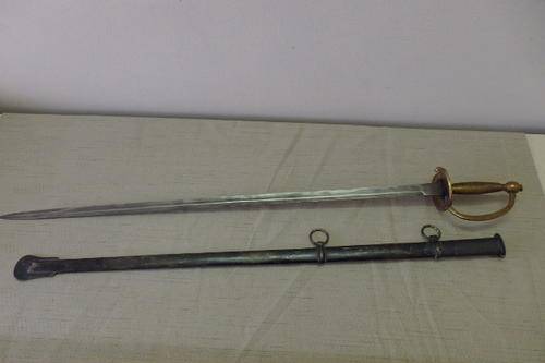 THIS AWESOME VINTAGE FRENCH INFANTRY SWORD WITH AN AMAZING BRASS GRIP AND A METAL SCABBARD IS A VINTAGE REPLICA OF THE SWORDS USED BY THE FRENCH IN THE LATER PART OF THE 1700's AND INTO THE 1800's. THE SWORD IS IN GREAT CONDITION WITH MINIMAL AGE AND USAGE RELATED WEAR AND TEAR. THE SWORD HAS GOOD WEIGHT TO IT TOO. THE SWORD MEASURES AS FOLLOWS: 97.5cm LONG, THE SCABBARD IS 85.5cm AND THE COMBINED LENGTH IS 100.5cm.