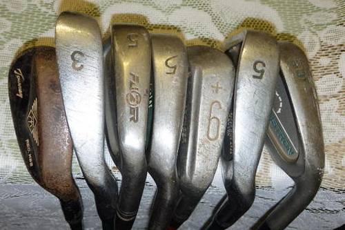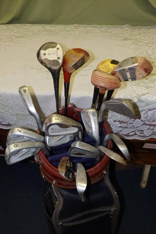 THIS AWESOME VINTAGE GOLF CLUB SET INCLUDES WOODS AND IRONS AND IS IN A VINTAGE VINYL JOE POWELL BAG. PLEASE VIEW THE PICS CAREFULLY FOR THE DETAILS OF THE WOODS AND THE IRONS THAT ARE INCLUDED IN THE SET AND THE CONDITION OF THE SET. THE SET DOES HAVE AGE AND USAGE RELATED WEAR AND TEAR. THIS SET COULD BE USED AS A PRACTICE SET, OR FOR A BEGINNER, OR AS AN ADDITION TO YOUR GOLD SET.