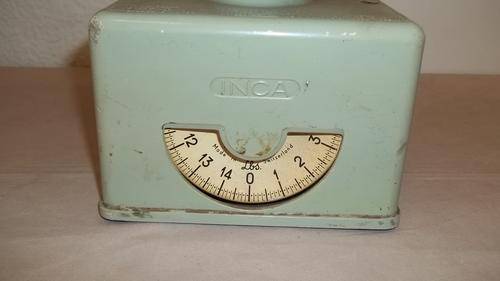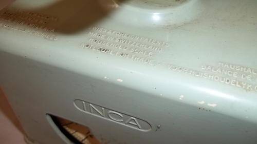 THIS MAGNIFICENT AND VERY COLLECTIBLE VINTAGE "INCA" OF SWITZERLAND HOUSEHOLD SCALE WAS MANUFACTURED IN THE 1940/1950's. THE SCALES WERE MADE IN THE FASHIONABLE COLOURS OF THOSE YEARS SUCH AS POWDER GREEN, YELLOW AND BLUE ETC.