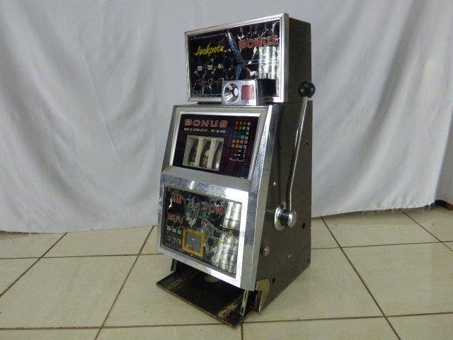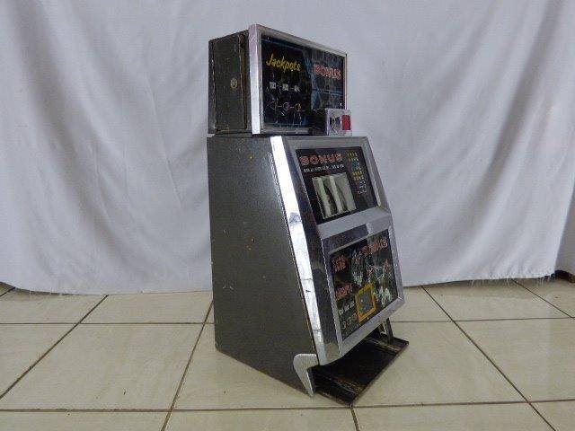 AN ABSOLUTELY AWESOME VINTAGE SEGA ONE ARM BANDIT FOR YOU TO REFURBISH OR USE AS IS AS A PROP IN YOUR BAR OR LAPA.THIS WONDERFUL MACHINE HAS ALL ITS PARTS BUT NEEDS A FIX UP TO GET IT WORKING AGAIN. WE UNFORTUNATELY DO NOT HAVE THE KEY TO OPEN IT. IT HAS AGE RELATED WEAR AND TEAR BUT IT IS STILL AN AWESOME PIECE TO HAVE ON DISPLAY OR WORKING IN YOUR PUB OR LAPA.. IT MEASURES APPROXIMATELY 44cm x 48cm x 84cm HIGH.