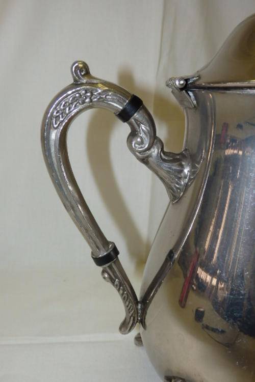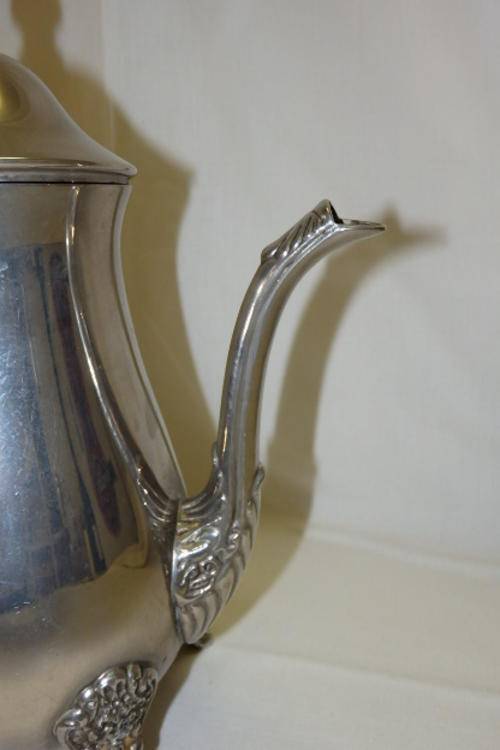THIS AWESOME VINTAGE SILVER PLATED TALL COFFEE POT WITH STUNNING ORNATE DETAILING MEASURES 23cm (SPOUT TO HANDLE) x 25cm TALL. THE COFFEE POT CAN HOLD SIX CUPS OF COFFEE OR FOUR MUGS. THERE IS MINOR AGE AND USAGE RELATED WEAR AND TEAR AND TARNISHING, WITH A LITTLE STAINING ON THE INSIDE OF THE COFFEE POT. THE COFFEE POT WOULD SUIT JUST ABOUT ANY SILVER PLATED TEA SERVING SET.