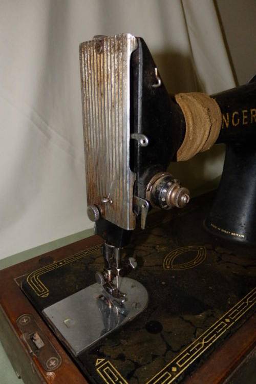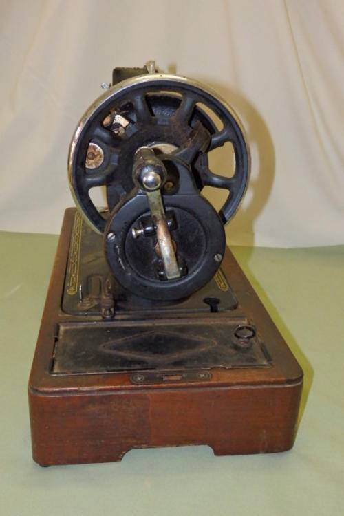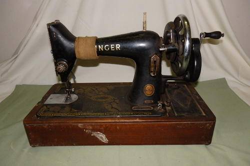 THIS AWESOME VINTAGE (1954) SINGER 99K HAND CRANKED SEWING MACHINE IN A WOODEN HARD CASE HAS SERIAL NUMBER EK 059643 WHICH DATES IT TO 1953. THE HARDCASE AND THE MACHINE HAVE AGE AND USAGE RELATED WEAR AND TEAR AND ALTHOUGH THE HAND CRANK DOES TURN, THIS IS AN ORNAMENTAL MACHINE. THE LID OF THE WOODEN CASE IS DAMAGED. PLEASE VIEW THE PICS CAREFULLY FOR THE GENERAL CONDITION OF THE SEWING MACHINE.