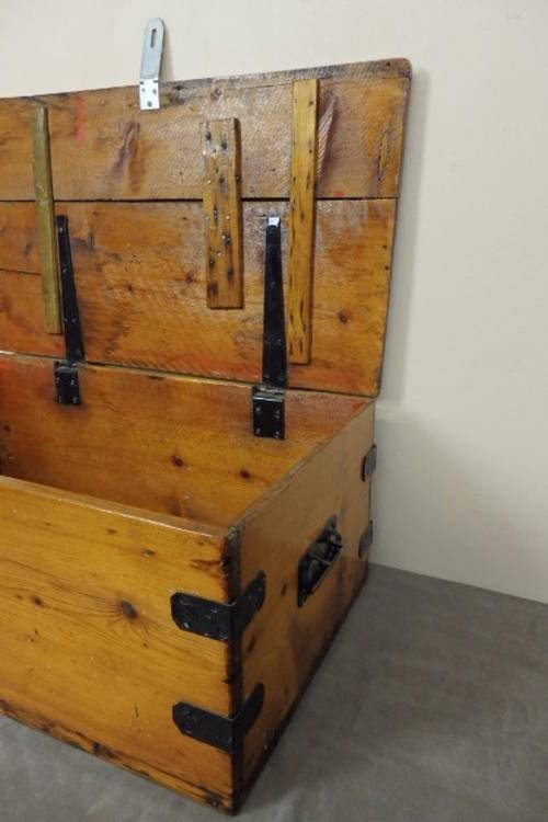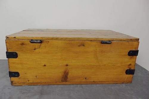 THIS AWESOME VINTAGE SOLID "OREGAN" PINE DOUBLE HANDLED CHEST/ STORAGE BOX WITH A HINGED LID AND IRON DETAILING AROUND THE BOX IS IN GREAT CONDITION FOR ITS AGE. THE CHEST MEASURES 790mm LONG x 460mm WIDE x 325mm HIGH. THE CHEST IS PERFECT AS A LINEN BOX IN FRONT OF A BED OR AS A CENTRE COFFEE TABLE IN A LOUNGE OR EVEN AS A DISPLAY "TABLE" IN A FOYER OR HALLWAY. IT CAN ALSO BE USED FOR TOOLS OR COLLECTIBLES, OR A TOY BOX OR TO PACK FOODS OR BREAKABLES ON A CAMPING TRIP.