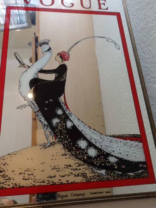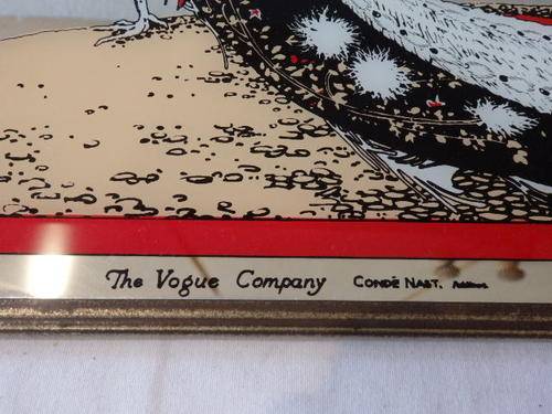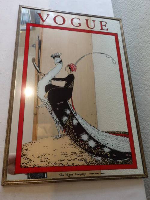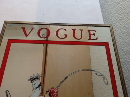 THIS STUNNING AND VERY COLLECTABLE VINTAGE VOGUE MIRROR WITH THE IMAGE THAT WAS USED ON A PUBLICATION IN 1918, MEASURES 45.5cm x 30.5cm. THE MIRROR IS FRAMED IN A THIN METAL MIRROR WHICH HAS SEEN SOME TARNISHING, BUT THIS MIRROR NEEDS TO BE PUT INTO A NICE THICK ORNATE FRAME TO REALLY BRING OUT THE CHARM.