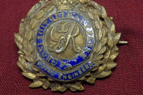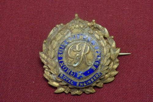 THIS AWESOME AND PRETTY RARE VINTAGE WORLD WAR II KINGS CROWN ROYAL ENGINEERS LAPEL BADGE WITH KING GEORGE V HAS ENAMELLED DETAILING AND IS IN GOOD CONDITION FOR ITS AGE. THE BADGE MEASURES 3cm ACROSS.