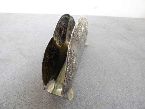 THIS GORGEOUS DAINTY AND VERY ELEGANT SILVER PLATED NAPKIN HOLDER WITH STUNNING DETAIL IS 7.5cm HIGH AND 13cm LONG. THIS ELEGANT HOLDER CAN STILL BE USED ON YOUR TABLE TO HOLD SERVIETTES OR NAPKINS., ABSOLUTELY BEAUTIFUL ON ON YOUR TABLE..