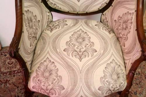 This absolutely beautiful hand carved Victorian chair is stylish and very elegant to have as a show piece in a formal lounge or living room, study or entrance foyer. The decorative floral carvings in the dark wood is complimented perfectly by the new light floral themed upholstery. The chair is in a beautiful strong durable quality fabric and is in great condition with hardly any wear and tear for the age! This beautiful, stylish armchair is solidly built and definitely made to last - firm and heavy on the ground and very comfortable!! The chair measures approximately 67cm x 67cm x 90cm high. Please view the pics carefully to fully appreciate this stunning and carved Victorian chair and to confirm the condition.