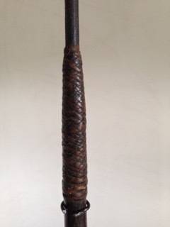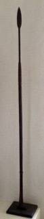 AN EXCELLENT OLD ZULU SPEAR FROM A PRIVATE COLLECTION MOUNTED ON A CUSTOM STAND