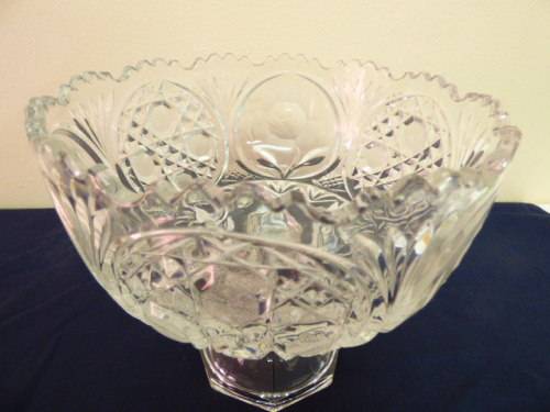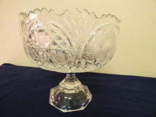 THIS EXQUISITE LEAD CRYSTAL STEMMED CENTRE TABLE BOWL IS BEAUTIFUL AND SOMETHING DIFFERENT TO HAVE ON YOUR TABLE. IT HAS A THE GORGEOUS "ROSE CUT" PATTERN. THIS STUNNING CENTREPIECE MEASURES 22cm x 20cm HIGH. THIS IS WITHOUT-A-DOUBT AN EYE-TURNING BOWL AND HAS STUNNING WEIGHT TO IT (2.6KG) THERE ARE NO CHIPS, CRACKS OR BREAKS ON THIS MAGNIFICENT CRYSTAL BOWL..