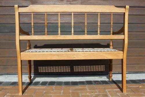 AN EXCEPTIONAL AND BEAUTIFUL SOLID OAK RIEMPIE BENCH. THIS BENCH IS IN FANTASTIC CONDITION AND THE RIEMPIES THEMSELVES ARE ALL IN GREAT CONDITION. THE FRONT LEGS HAVE BEAUTIFUL DETAIL, ONE COULD ADD SOME CUSHIONS ON THE SIDE IF YOU WANTED TO, BUT THIS BENCH IS SO STUNNING IT CAN HOLD ITS OWN. THE BENCH IS VERY STABLE ON THE GROUND AND WITHOUT A DOUBT A STUNNING PIECE OF FURNITURE! THE SIZE OF THE BENCH IS APPROXIMATELY 55cm x 170cm x 93cm HIGH.