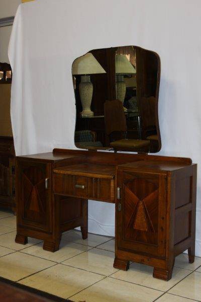 THIS IS A MAGNIFICENT UNIQUE WOOD-INLAY DRESSING TABLE WITH A LARGE MIRROR!!! AN EXQUISITE PIECE OF FURNITURE IN EXCELLENT CONDITION FOR IT'S AGE!!! THE DRESSER IS APPROXIMATELY 1300mm x 410mm x 1500mm HIGH. PLEASE VIEW THE PICS CAREFULLY FOR MORE DETAIL AND CONDITION AS THIS FORMS PART OF THE DESCRIPTION; WHAT YOU SEE IS WHAT YOU GET!!! POSTAGE IS NOT POSSIBLE SO PLEASE VIEW OUR SHIPPING OPTIONS OR ARRANGE FOR COLLECTION IN EDENVALE FREE OF CHARGE!