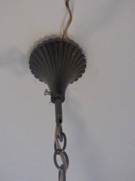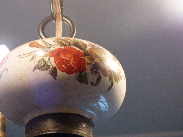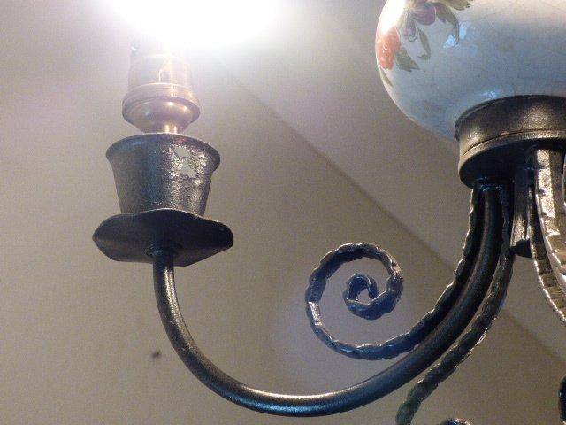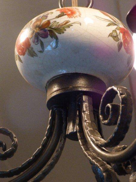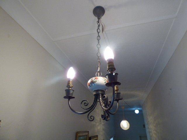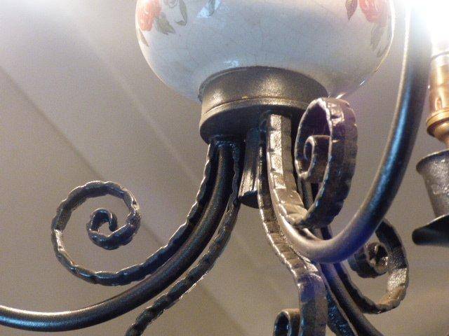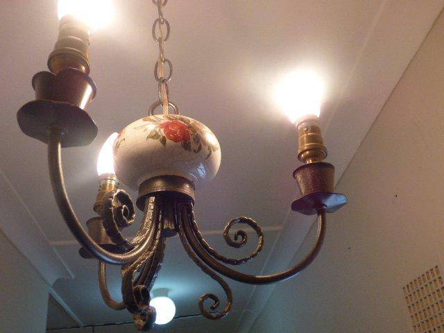 THIS EXCEPTIONALLY BEAUTIFUL VINTAGE CAPODIMONTE 3 LIGHT CHANDELIER WAS HAND MADE BY THE FINEST ARTISTS IN ITALY. THE INTRICATE DESIGNS AND THE WONDERFUL FLOWER ACCENTS ADD TO THE FINISHING AND MOST BEAUTIFUL TOUCHES TO THIS EXQUISITE CHANDELIER. THIS CHANDELIER WILL ADD CLASS, STYLE AND ELEGANCE IN ANY ROOM. ( The one globe needs replacing)