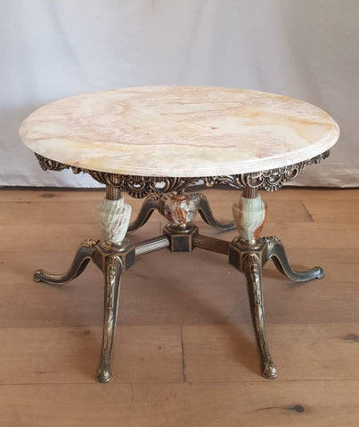 The solid marble is distinctively Valencian with hints of pink and burnt orange and salmon and natural earth tones. The table is in lovely vintage condition and exudes opulence.