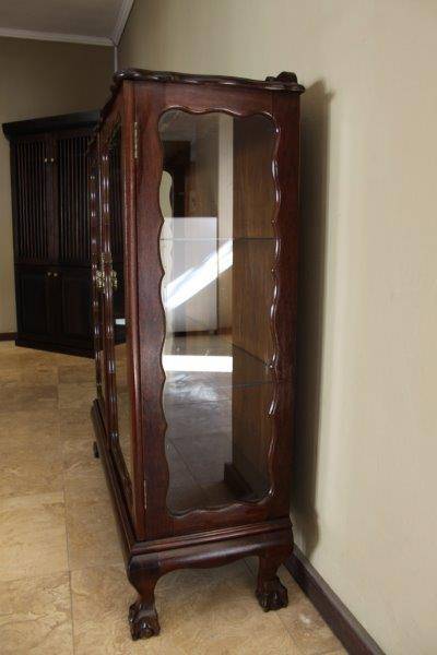 THIS IS AN EXCEPTIONAL ANTIQUE SOLID IMBUIA BALL & CLAW SHOWCASE IN FANTASTIC CONDITION FOR THE AGE!!! THIS IS A MAGNIFICENT PIECE OF FURNITURE!!! I THINK THE SHOWCASE WOULD LOOK ABSOLUTELY AWESOME IN AN ENTRANCE HALLWAY, STUDY OR PERHAPS IN AN EXECUTIVE OFFICE FOR YOUR VALUABLE COLLECTIBLES AND / OR BOOKS... THEY ALSO LOOK GREAT PAINTED AND DISTRESSED! THE SIZE OF THE CABINET IS APPROXIMATELY 1060mm WIDE x 370mm DEEP x 1320mm HIGH.