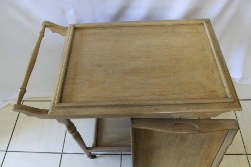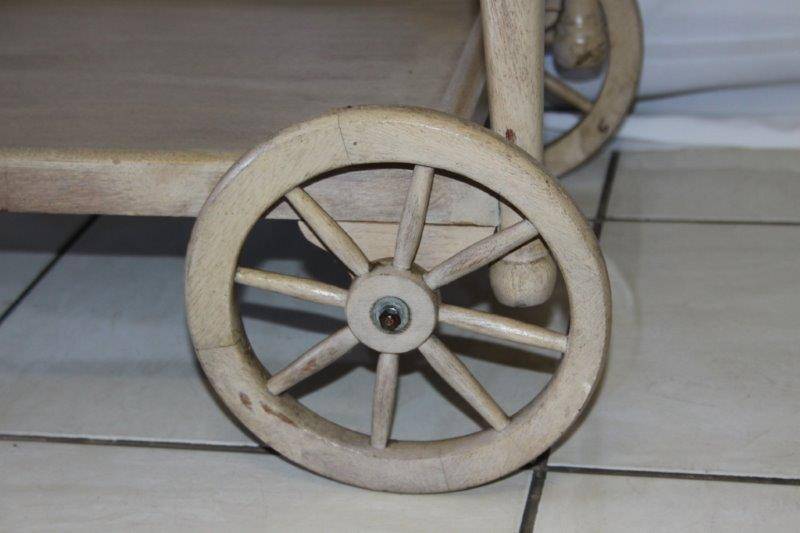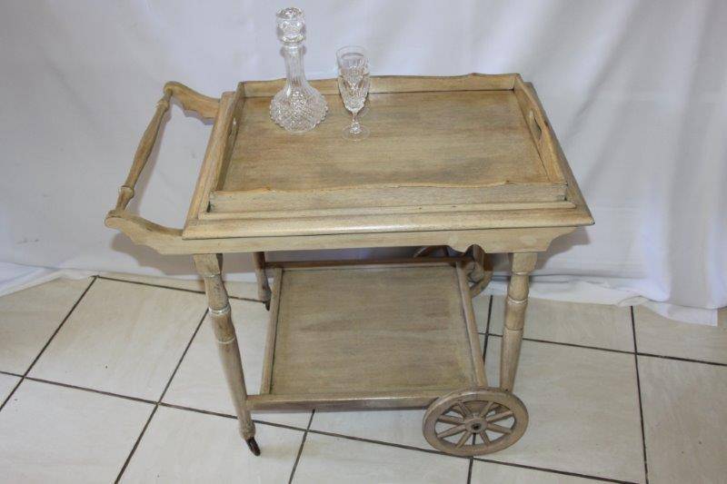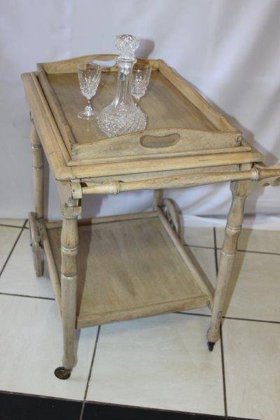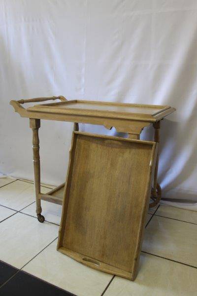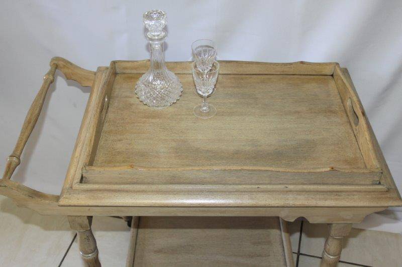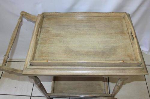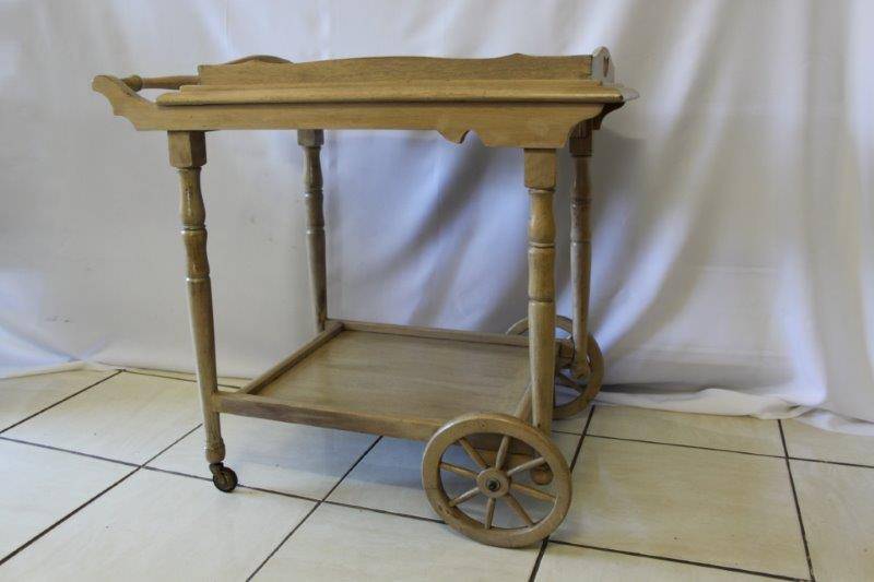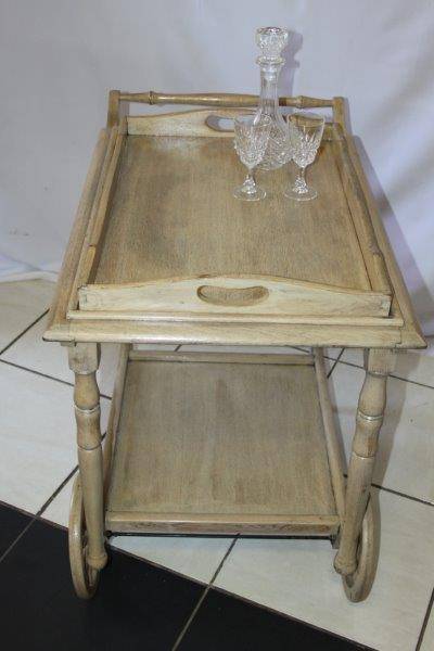 WE ARE OFFERING AN EXQUSITE BUTLERS TROLLEY IN FANTASTIC CONDITION!!! THE TROLLEY HAS BEEN BLEACHED AND WASHED AND IS TRULY A BEAUTIFUL PIECE OF FURNITURE WITH CHARM AND CHARACTER. THE TRAY AT THE TOP COMES OFF AND CAN BE USED AS A BUTLERS TRAY OR KEPT ON THE TROLLEY. THIS WOULD BE AWESOME ON A PATIO, AROUND THE POOL, IN A BOARD ROOM / OFFICE, JUST ABOUT ANYWHERE AND I REALLY HOPE BUYERS SEE THE VALUE OF THIS BEAUTIFUL PIECE OF FURNITURE...