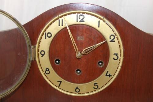 THIS EXQUISITE ANTIQUE (1930 TO 1940) "UNCO" ART DECO MANTLE CLOCK IN WORKING CONDITION AND HAS A DOMED GLASS DOOR. THE CASING IS IN GOOD CONDITION WITH ABSOLUTE MINIMAL AGE RELATED WEAR AND TEAR. THE MANTLE CLOCK CHIMES (WESTMINSTER CHIME) ON THE QUARTER HOUR, HALF HOURLY AND HOURLY INTERVALS. THE KEY IS INCLUDED WITH THE CLOCK. THE CLOCK MEASURES 460mm LONG x 155mm WIDE x 225mm HIGH. ALTHOUGH THE CLOCK IS WORKING, WE HIGHLY RECOMMEND THAT IT BE SERVICED AND RE-ALIGNED SO THAT YOU CAN GET THE COMPLETE BENEFIT OF THIS GORGEOUS ANTIQUE MANTLE CLOCK. WE ARE NOT ABLE TO POST THE CLOCK AS IT WOULD UPSET THE CLOCK MECHANISM. COLLECTION AND COURIER OPTIONS ARE AVAILABLE TO YOU. PLEASE VIEW THE PICS CAREFULLY FOR THE GENERAL CONDITION OF THIS AMAZING MANTLE CLOCK.