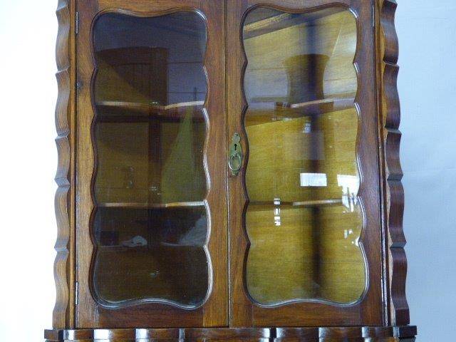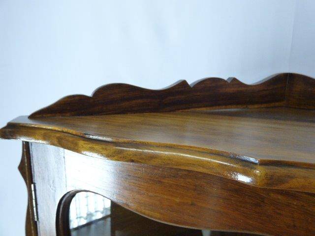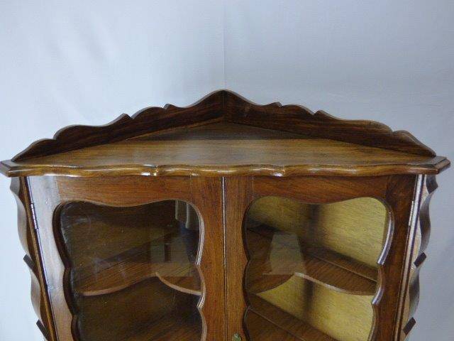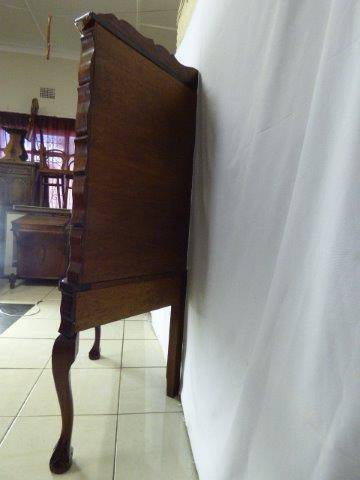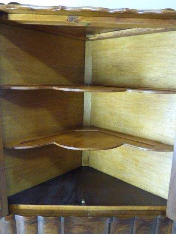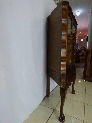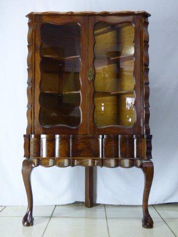 THIS IS AN EXQUISITE ANTIQUE IMBUIA BALL & CLAW CORNER DISPLAY CABINET WITH SPECTACULAR WOODWORK ON THE DOORS AND THE EDGINGS!!! THIS IS A MAGNIFICENT QUALITY PIECE OF FURNITURE!!! I THINK IT WOULD LOOK BEAUTIFUL IN A FORMAL LOUNGE OR ENTRANCE CORNER, EVEN IN AN EXECUTIVE OFFICE... THE SIZE OF THE CABINET IS APPROXIMATELY 49cm x 88cm x 154cm HIGH.