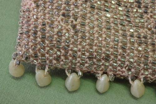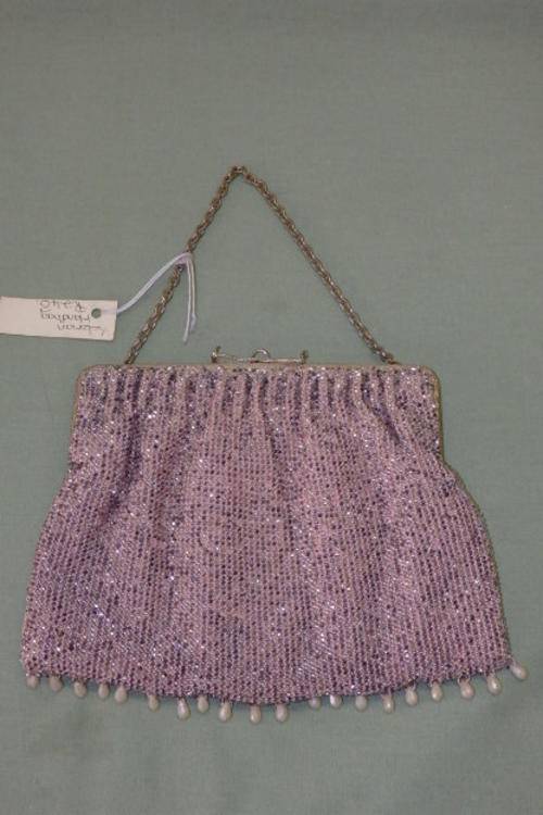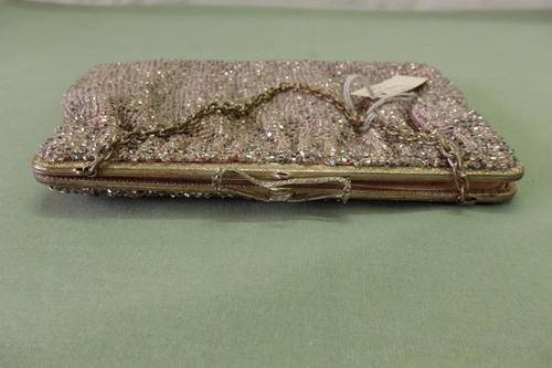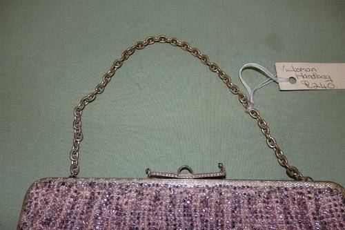 THIS EXQUISITE ANTIQUE PINK GLASS BEADED VICTORIAN LADIES HANDBAG WITH TEAR-DROP PEARL BEADS ALONG THE BASE AND A SILVER METAL FRAME MEASURES 22.5cm LONG x 17cm WIDE. THE HANDBAG IS LINED IN A PALE DUSTY PINK SATIN FABRIC. THERE IS MINOR AGE AND USAGE RELATED WEAR AND TEAR AND THE HANDBAG HAS BEEN WELL PRESERVED.