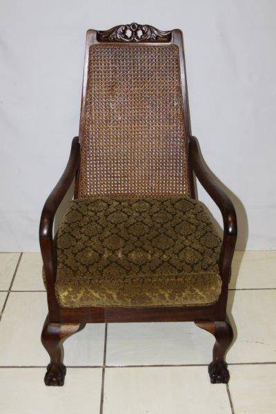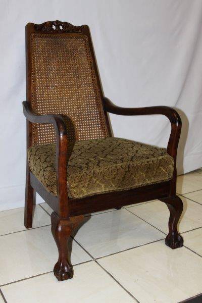 THIS ABSOLUTELY STUNNING UNUSUAL ANTIQUE RATTAN BACK BALL & CLAW CHAIR IS PERFECT FOR THAT LOST CORNER IN THE STUDY OR A BEDROOM... AN EXQUISITE SHOW PIECE IN GREAT CONDITION FOR THE AGE!!! HIGHLY COLLECTIBLE AND VERY VALUABLE; THE CHAIR SITS FIRMLY ON THE GROUND, NOT WONKY AT ALL!!! PLEASE VIEW THE PICS VERY CAREFULLY FOR MORE DETAIL AND THE CONDITION AS THIS FORMS PART OF THE DESCRIPTION - WHAT YOU SEE IS WHAT YOU GET! POSTAGE AND PACKAGING WILL NOT BE POSSIBLE SO PLEASE ARRANGE FOR COLLECTION IN EDENVALE OR VIEW OUR SHIPPING OPTIONS!