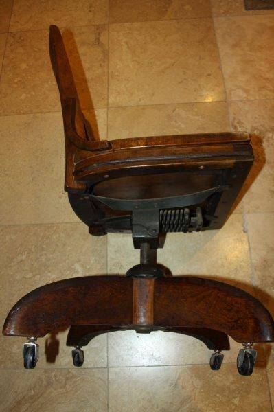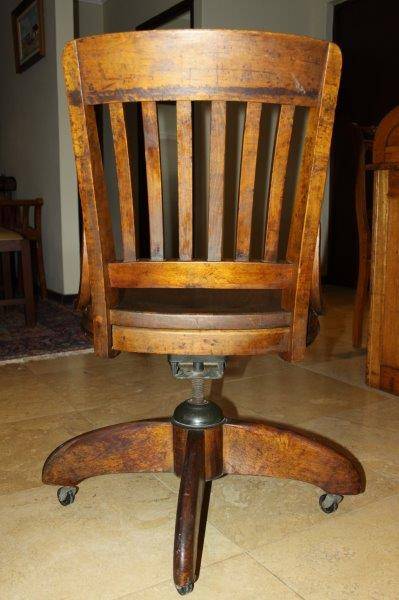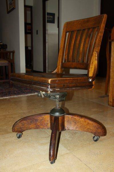 THIS ABSOLUTELY STUNNING ANTIQUE SOLID SWIVEL OFFICE CHAIR IS IN EXCELLENT CONDITION FOR THE AGE AND PERFECT FOR AN EXECUTIVE OR HOME OFFICE! IT IS GORGEOUS WITH TONS OF CHARACTER!!! THE CHAIR IS VERY WELL BUILT, WELL PUT TOGETHER, VERY STURDY AND DEFINITELY MADE TO LAST! THE CHAIR SWIVELS AND TILTS AND IT'S QUITE HEAVY! THE SIZE IS APPROXIMATELY 500mm x 500mm x 880mm HIGH.