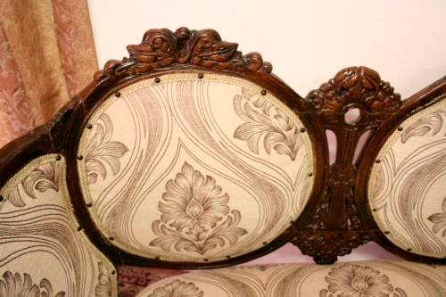 This stunning Victorian settee with beautiful new upholstery is an incredible antique piece that would look spectacular in any home. The frame is solid wood that has matured over the decades into a rich warm colour and the depth of wood shines through. It has the classic curved high back with fine scrolled carving and this theme is carried on through to the legs. This spectacular settee can sit against a wall, at the end of a bed or as a room divider as it has a flatter back. This settee is firm and supportive with no loose joints. The settee measures 130cm long x 68cm wide x 90cm high. This settee would add absolute elegance and class to any room it is in and would be perfect in a living room that needs an extra dash of antique flair. There is hardly any age related wear and tear. Please view the pics carefully to fully appreciate this truly spectacular Victorian settee and to confirm the condition.