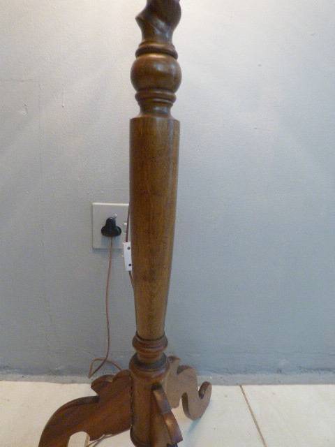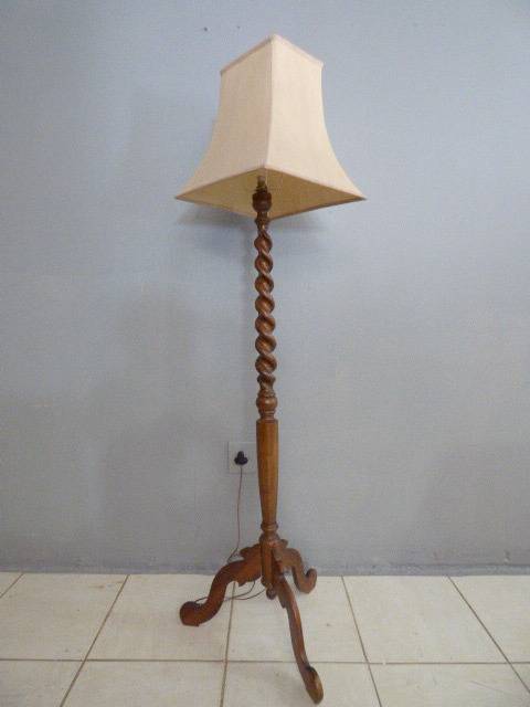 THIS ABSOLUTELY GORGEOUS, EXQUISITE, FREESTANDING BALI TWIST LAMP WITH SPLAYED TRIPOD FEET HAS WONDERFUL DETAIL ON IT. IT COMES WITH A BEAUTIFUL SHADE AND IS IN VERY GOOD WORKING CONDITION!!! THE LAMP STANDS APPROXIMATELY 168cm HIGH.