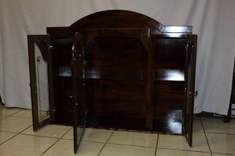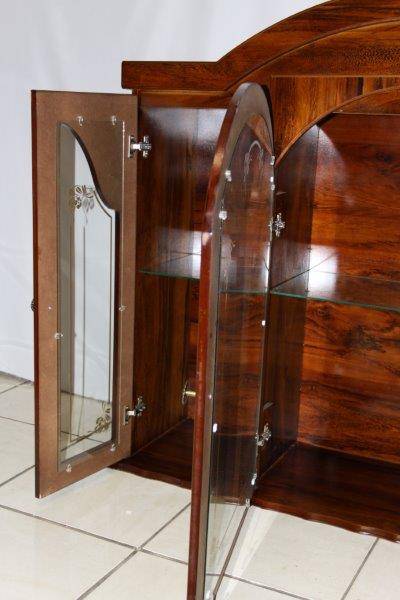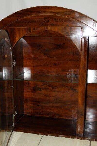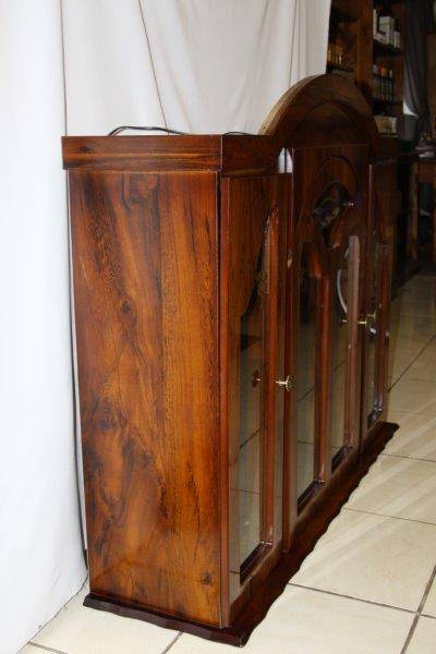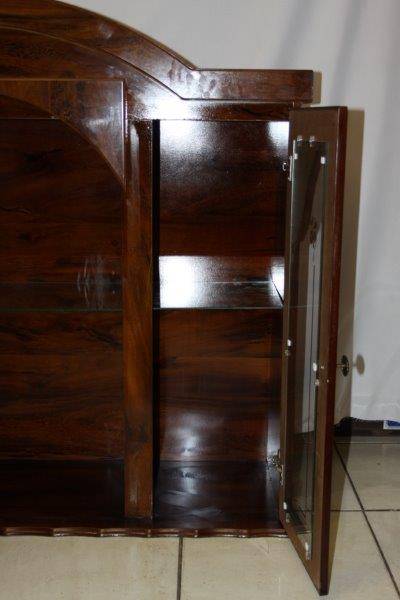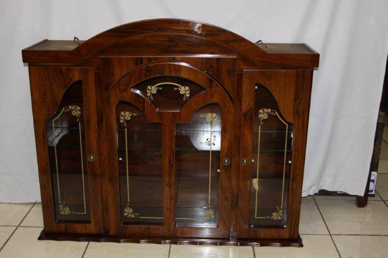 THIS IS A STUNNING WALL MOUNTED VENEER DISPLAY CABINET WITH BEAUTIFUL GLASS, DOWN LIGHTS, GLASS SHELVES AND WOOD DOORS WITH EXQUISITE DETAILING!!!! THIS IS THE DISPLAY CABINET TO OWN FOR YOUR VALUABLE COLLECTIBLES WHETHER IT BE CARS OR PORCELAIN, THIS CABINET IS PERFECT!!! IT WOULD ALSO BE FANTASTIC BEHIND A BAR... PLEASE VIEW THE PICS VERY CAREFULLY FOR MORE DETAIL TO APPRECIATE THIS BEAUTIFUL FURNITURE.... WHAT YOU SEE IS WHAT YOU GET! THE CABINET IS APPROXIMATELY 1300mm WIDE x 1100mm HIGH x 320mm DEEP. PLEASE VIEW OUR SHIPPING OPTIONS OR COLLECT IN EDENVALE FREE OF CHARGE.