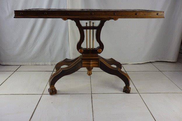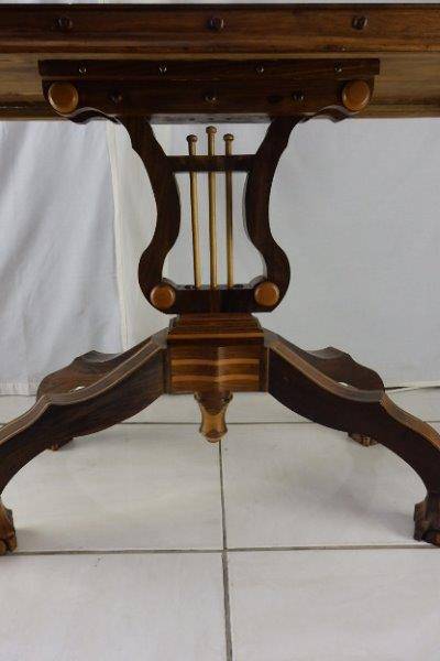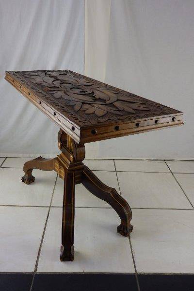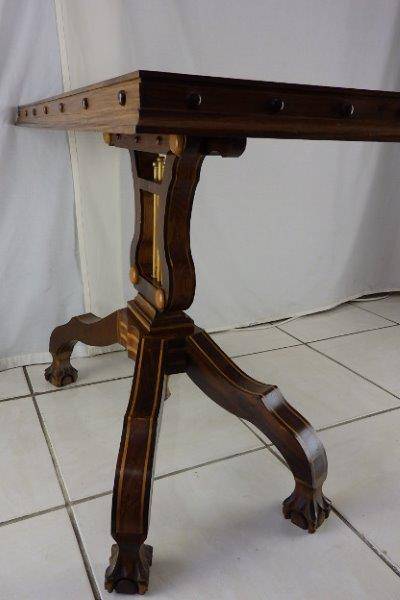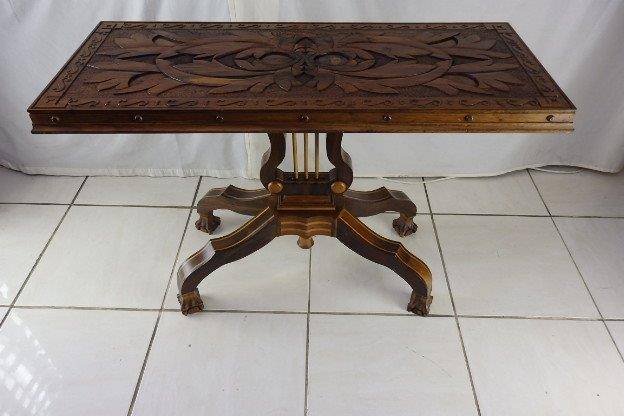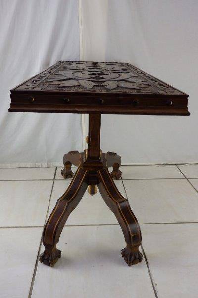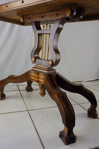 THIS SPECTACULAR, HAND CARVED, SOLID TEAK, DETAILED "DUNCAN PHYFE INSPIRED" AMERICAN HARP TABLE ON BALL & CLAW FEET IS TOTALLY AWESOME!!! THE TABLE HAS TONS OF CHARACTER AND IS JUST AN ALL-ROUND MAGNIFICENT PIECE OF FURNITURE!!!THE SIZE OF THE TABLE IS APPROXIMATELY 960mm x 400mm x 650mm HIGH. PLEASE VIEW THE PICS VERY CAREFULLY FOR MORE DETAIL AND CONDITION AS THIS FORMS PART OF THE DESCRIPTION - WHAT YOU SEE IS WHAT YOU GET! POSTAGE WILL NOT BE POSSIBLE SO PLEASE ARRANGE FOR COLLECTION IN EDENVALE FREE OF CHARGE OR VIEW OUR SHIPPING OPTIONS!!! WE CAN COURIER OR DELIVER ANYWHERE IN THE COUNTRY!
