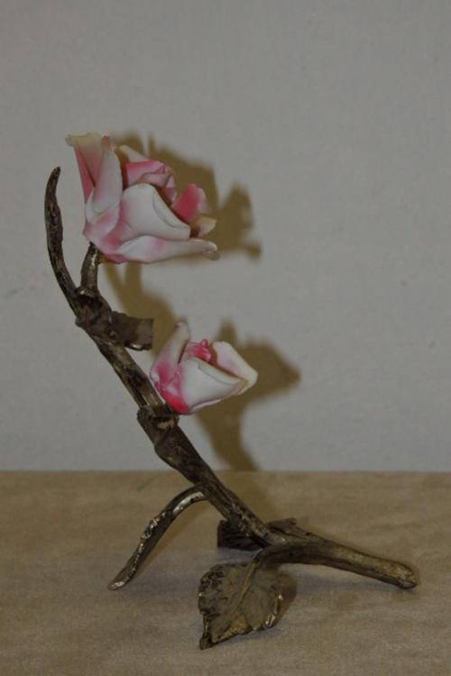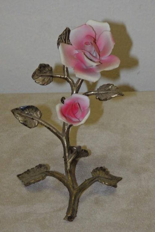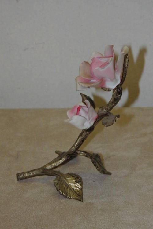 CAPODIMONTE PORCELAIN FINDS ITS HISTORY AS FAR BACK AS 1743. THIS MAGNIFICENT HAND MADE PORCELAIN STEM OF PINK ROSES IS MADE IN ITALY AND MEASURE 10.5cm x 7.8cm. THERE IS NO DAMAGE TO THE PETALS. EACH PETAL HAS BEEN EXQUISITELY HAND PAINTED TO GIVE IT AN ABSOLUTELY REALISTIC FEEL. I THINK THE STEM IS BRASS PLATE.