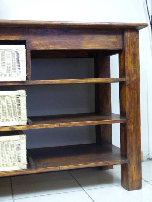 THIS REALLY MAGNIFICENT LARGE PINE SERVER WITH THREE BASKET DRAWERS IS STYLISH, BEAUTIFUL AND PERFECT FOR YOUR MORE INFORMAL DINING AREA, PATIO OR UNDER THE LAPA. THE QUALITY CRAFTSMANSHIP IS SUPERB AND IT'S STILL IN FANTASTIC CONDITION! THE SIZE OF THE SERVER IS APPROXIMATELY 60cm x 179cm x 94cm HIGH.