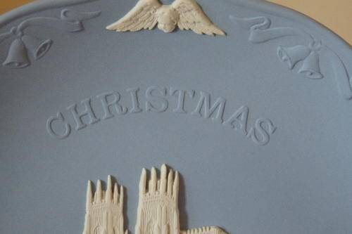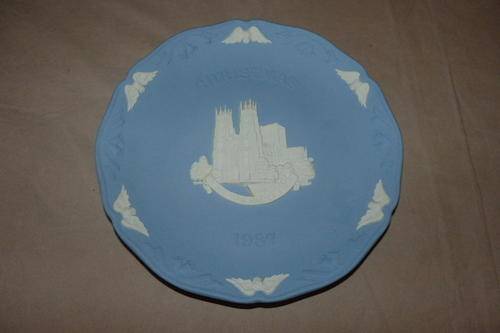 THIS EXQUISITE LIMITED EDITION "WEDGWOOD" JASPERWARE "CATHEDRALS OF ENGLAND" CHRISTMAS 1987 COLLECTABLE PLATE DEPICTS THE FAMOUS CATHEDRAL OF YORK "THE YORK MINSTER". THE PLATE HAS A SERIES OF CHERUBS CIRCLING THE PLATE WITH BOWS AND BELLS. THE PLATE IS IN STUNNING CONDITION AND HAS NO CHIPS OR CRACKS OR SCUFFS. THE CATHEDRAL SERIES WAS ONLY MANUFACTURED BETWEEN 1986 AND 1990. THE PLACE CAN BE PURCHASED FROM REPLACEMENTS FOR R 1500.00. THE PLATE IS 18cm ACROSS.