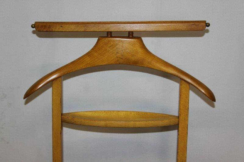 Such stands were common from the 1800s up to the mid-20th century. When men’s daily fashion steered away from trousers, jackets, suits, sport-coats and blazers in the decades after the Second World War, valet stands became less and less useful, and eventually people stopped buying them, and making them. But they are handy pieces of kit for those who still tend to dress in a more conservative or traditional style.