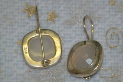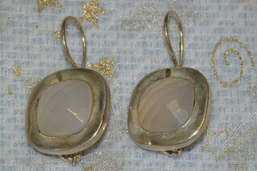 THIS EXQUISITE PAIR OF (LARGE) WHITE ONYX AND STERLING SILVER LADIES EARRING ARE FOR PIERCED EARS. THE WHITE ONYX STONES MEASURE ROUGHLY 1.8cm x 1.8cm AND THE EARRINGS ARE ABOUT 3cm LONG. THE STONES HAVE A BEAUTIFUL FACETED CUT, GIVING THEM A VERY "SHIMMER". THEY ARE PARTICULARLY GORGEOUS.