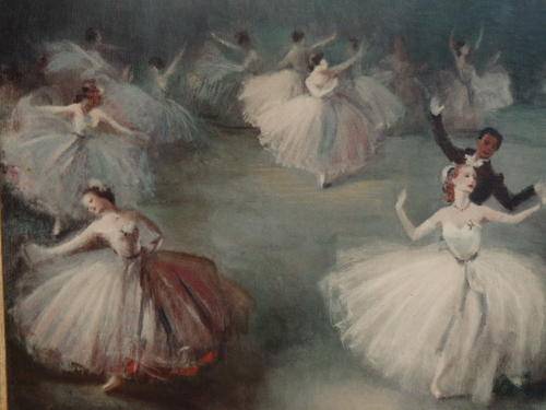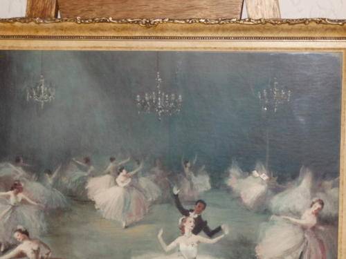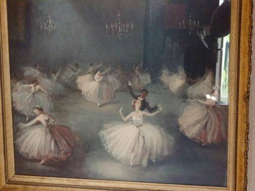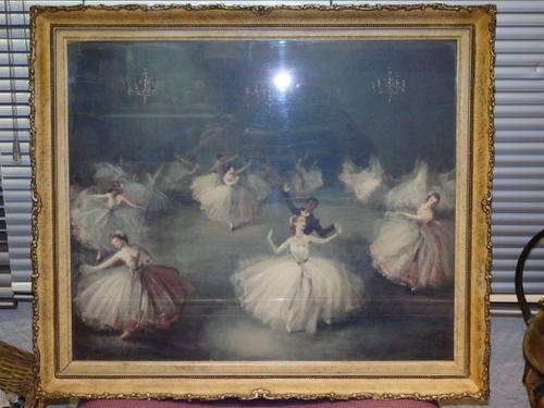 THIS EXQUISITE PRINT OF AN ORIGINAL OIL PAINTING BY FAMOUS ARTIST CARLOTTA EDWARDS TITLED "LA VALSE" (THE WALTZ) IS IN A VINTAGE ORNATE FRAME BEHING GLASS. THE ARTIST WAS WELL KNOWN FOR HER BALLET PAINTINGS. THIS PARTICULAR BALLET GROUP WAS THE NEW YOUR CITY BALLET GROUP AND THE PAINTING MEASURES 64.5cm x 55.5cm|.