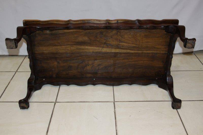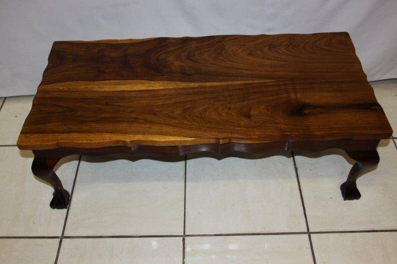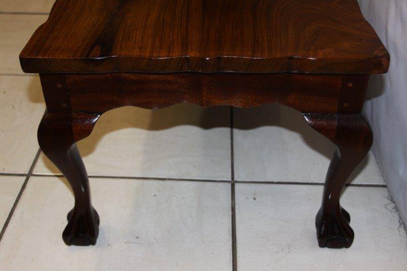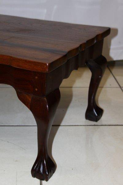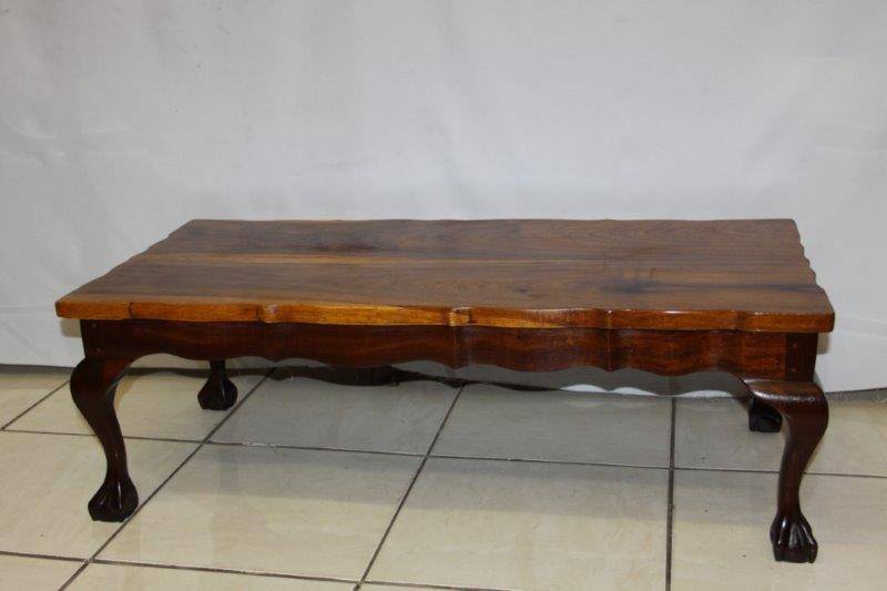 THIS STUNNING CARVED SOLID KIAAT BALL & CLAW COFFEE TABLE IS UNIQUE, AWESOME AND IN EXCELLENT CONDITION FOR THE AGE!!! THE DETAIL IS TOTALLY AWESOME!!! ALL TOTALLY ORIGINAL, BEAUTIFUL DETAIL AND AN ALL ROUND AWESOME PIECE OF FURNITURE!!! PLEASE VIEW THE PICS VERY CAREFULLY FOR MORE DETAIL AND CONDITION; WHAT YOU SEE IS WHAT YOU GET! THE SIZE OF THE TABLE IS APPROXIMATELY 1060mm x 500mm x 360mm HIGH. POSTAGE AND PACKAGING WILL NOT BE POSSIBLE SO PLEASE ARRANGE FOR COLLECTION IN EDENVALE!