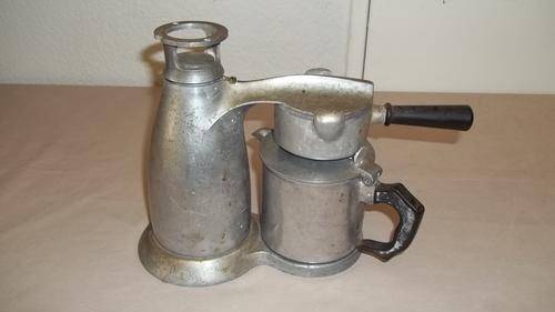 THIS AMAZING VINTAGE ITALIAN MADE VESUVIANA BREV 415468 STOVE TOP ESPRESSO MACHINE IS MADE FROM A CAST ALUMINIUM AND WAS MADE BETWEEN 1940 AND 1950. THIS IS QUITE AN AWESOME MACHINE AND PARTS ARE STILL AVAILABLE FOR IT. A GOOD CLEAN AND SERVICE WOULD RESTORE THIS AMAZING ESPRESSO MAKER TO IT'S FORMER GLORY. THE WATER POT APPARENTLY HOLDS JUST OVER TWO CUPS OF WATER.