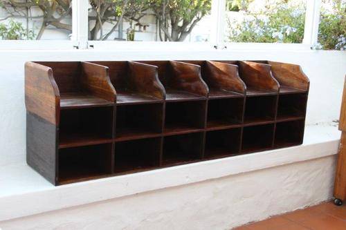 AN EXCEPTIONAL VINTAGE EX-MILITARY SOLID RED IVORY FILING SORTER WITH 18 COMPARTMENTS, IN EXCELLENT CONDITION!!! THIS FILING SORTER HAS A TON OF CHARACTER AND PERFECT FOR FILING, SCRAPBOOKING OR OTHER CRAFTS!!! THIS IS VERY WELL LOOKED AFTER; STURDY AND VERY VERY BEAUTIFUL!!! THE SORTER IS APPROXIMATELY 1600mm x 360mm x 490mm HIGH. PLEASE VIEW THE PICS VERY CAREFULLY FOR MORE DETAIL AND TO APPRECIATE THIS STUNNING UNUSUAL FURNITURE!!! POSTAGE WILL NOT BE POSSIBLE SO PLEASE COLLECT IN TABLEVIEW FREE OF CHARGE OR WE CAN DELIVER. PLEASE SEE OUR SHIPPING OPTIONS! WE CAN COURIER ANYWHERE IN THE COUNTRY!
