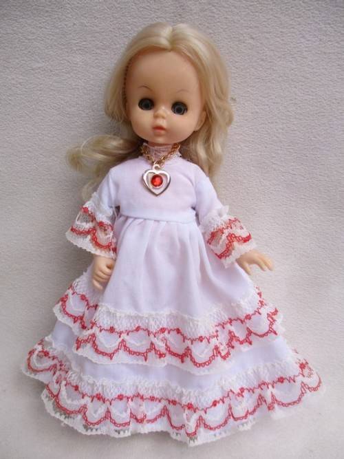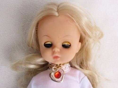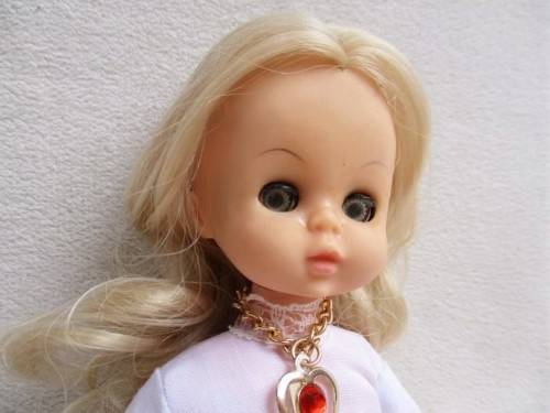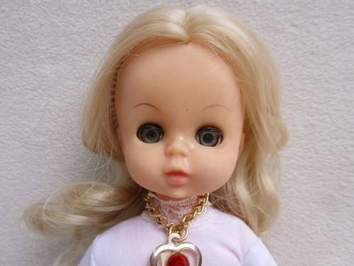 FROM WHAT I HAVE RESEARCHED SHE APPEARS TO BE A VOGUE DOLLY BUT I AM NOT 100% SURE. SHE IS 18CM TALL,IN VERY GOOD CONDITION WITH SOFT, SILKY HAIR AND IN ORIGINAL OUTFIT AND SLIPS INTO A HARD PLASTIC 'NAME CARD' STAND THERE IS SLIGHT DISCOLOURATION ON HER EYELIDS AS SHOWN IN LAST PIC BUT PLEASE BEAR IN MIND PIC IS MAGNIFIED SO NOT VERY OBVIOUS WHEN YOU LOOK AT HER WITH THE NAKED EYE. ALL-IN-ALL SHE DISPLAYS BEAUTIFULLY AND HAS AN AN EXQUISITE LITTLE FACE . MARKED ON BACK 'SYMBOL OF QUALITY 7021 MADE IN HONG KONG' WITH ALADDIN GENIE LAMP SYMBOL. REFER IMAGES