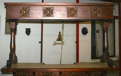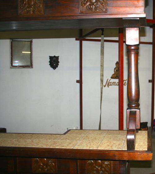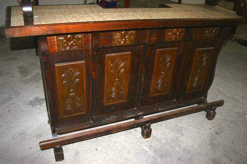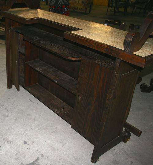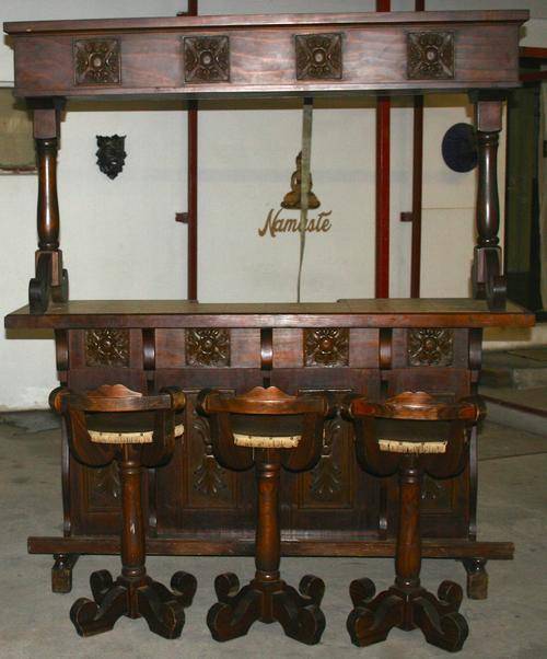 AN EXQUISITE VINTAGE WOODEN BAR WITH THREE BEAUTIFUL CHAIRS TO MATCH THIS VINTAGE PIECE