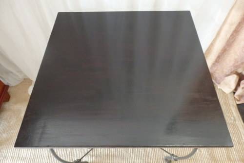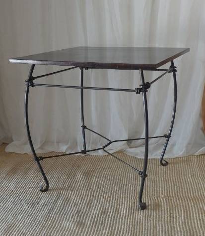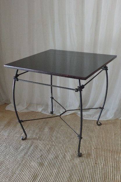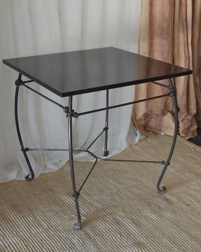 THIS EXQUISITELY MADE STURDY WROUGHT IRON SQUARE "CAFE" TABLE IS IN FABULOUS CONDITION AND IS THE IDEAL TABLE FOR UNDER A GAZEBO OR ON A PATIO/ LAPA OR EVEN NEXT TO THE POOL ETC. THE TABLE MEASURES 755mm LONG x 755mm WIDE x 755mm HIGH. THE WONDERFUL CLASSIC DESIGN OF THE WROUGHT IRON DETAILING AND THE BEAUTIFUL DARK WOOD OF THE TABLE TOP MAKE IS A PARTICULARLY GORGEOUS PIECE. THE PERFECT TABLE FOR A ROMANTIC DINNER FOR TWO UNDER THE STARS!!!