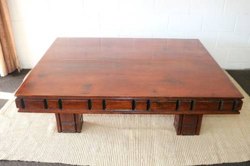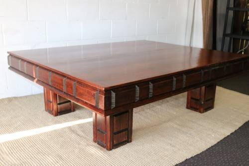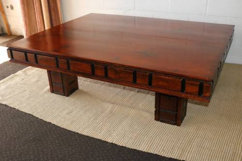 This beautifully made LARGE and striking centre coffee table with gorgeous classic lines and carvings measures a very decent 158cm long x 126cm wide x 49cm high. The table has awesome substance and is a heavy, solidly built table. There is normal usage related wear and tear but the table still looks great. This would be the ideal centre table in a living room even on a large covered patio. Please view the pics carefully to fully appreciate this truly stunning centre coffee table and to confirm the condition.