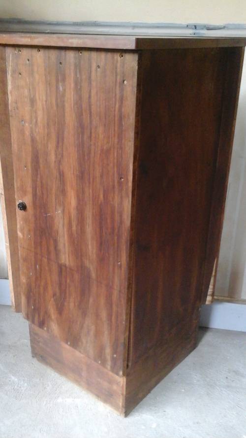 AN EXTREMELY UNUSUAL VINTAGE CORNER SPEAKER. MADE FROM WOOD. TURN IT INTO A BAR OR SHELVES