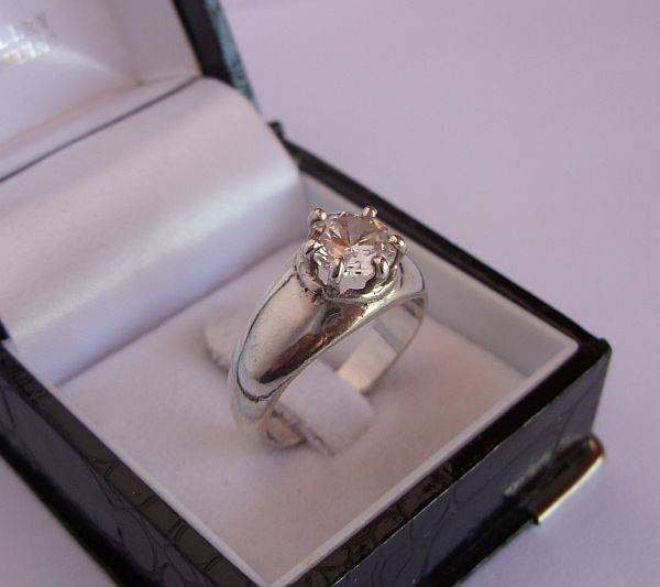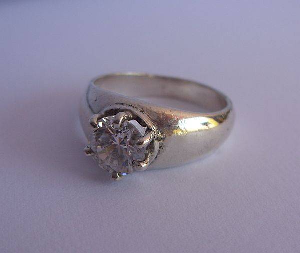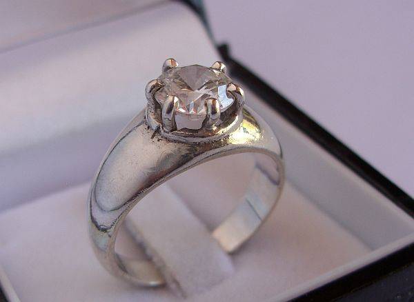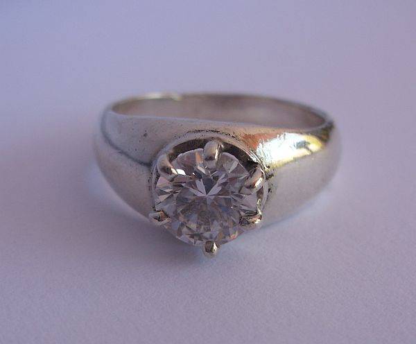 AN EYE CATCHING SOLID STERLING SILVER RING SET WITH A BIG FACETED CZ STONE !!!!!!