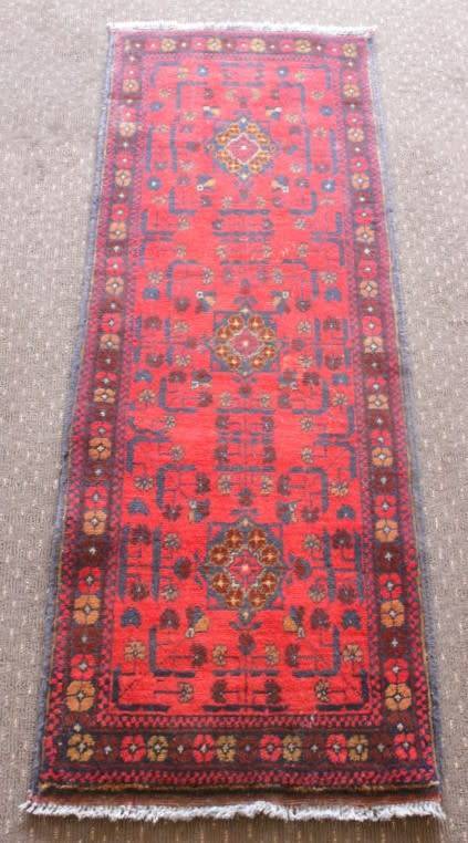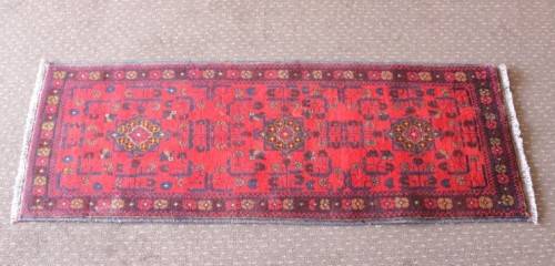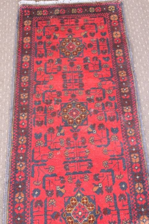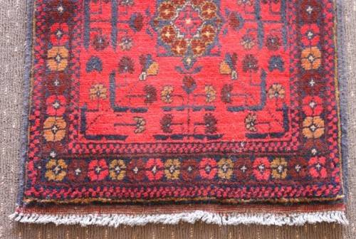 This incredible and beautifully made vintage Pakistani Bokhara carpet is in beautiful condition and measures a decent 154cm long x 54cm wide. The carpet would look stunning and a hallway or passage way or even in front of a reception desk at an office. The carpet has traditional burgundy tones with a vibrant red centre and blue and black accentuating detailing. The carpet is in lovely condition and has a little sun-bleaching, which adds to the charm of a vintage carpet. Please view the pics carefully to fully appreciate this awesome Pakistani Bokhara carpet and to confirm the condition.