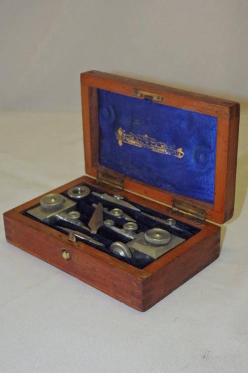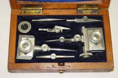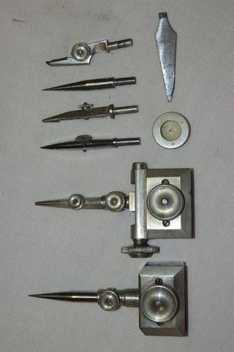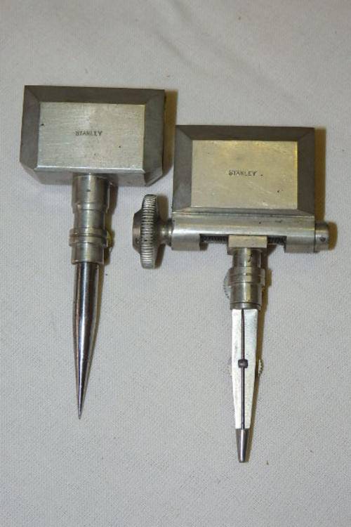 THIS INCREDIBLE AND EXCEPTIONALLY RARE VINTAGE BOXED SET OF STANLEY TRAMMEL POINTS SEEMS TO BE A COMPLETE SET WHICH IS VERY SCARCE. THE SET LOOKS TO DATE BACK TO THE SECOND WORLD WAR (I WAS NOT ABLE TO FIND AN IDENTICAL SET, BUT I FOUND SIMILAR ONES). THE SET IS IN GREAT CONDITION AND THERE IS MINOR AGE AND USAGE RELATED WEAR AND TEAR.