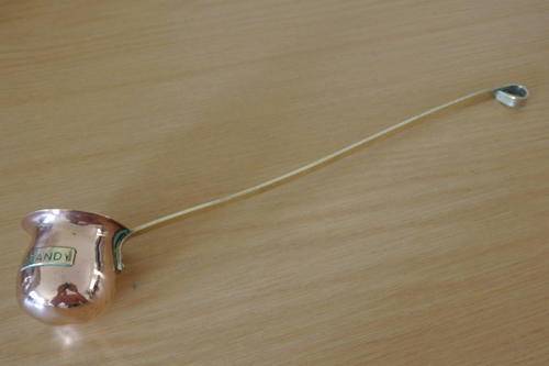 THIS INCREDIBLE AND VERY RARE ANTIQUE COPPER AND BRASS "BRANDY MASTERS" TASTING SCOOP MOST LIKELY DATES TO THE VERY EARLY 1900's. THE SCOOP IS 35cm LONG AND IN STUNNING CONDITION FOR ITS AGE. THERE IS NATURAL PETINA AND SOME WHERE AND TEAR WHICH IS TO BE EXPECTED.