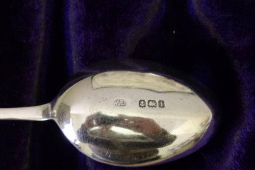 THIS INCREDIBLE BOXED SET OF SIX ANTIQUE (1908) HALLMARKED WILLIAM DAVENPORT STERLING SILVER TEASPOONS ARE HALLMARKED AS FOLLOWS: A "WD" CONFIRMING THE SPOONS WERE MADE BY WILLIAM DAVENPORT, AN "ANCHOR" CONFIRMING THEY WERE MADE IN BIRMINGHAM, A "LION" CONFIRMING THEY ARE BRITISH STERLING SILVER AND THE LETTER "i" CONFIRMING THEY WERE MADE IN 1908. THE SPOONS WEIGH 82.99g . THE CLIP ON THE BOX IS NOT WORKING, BUT THE SPOONS HAVE BEEN WELL PROTECTED IN THE SATIN AND VELVET LINED BOX. THERE IS MINIMAL AGE AND USAGE RELATED WEAR AND TEAR AND TARNISHING. THE HANDLES OF THE TEASPOONS ARE MONOGRAMMED WITH THE INITIALS "PJAO"