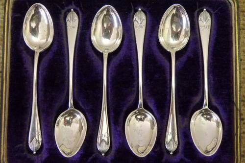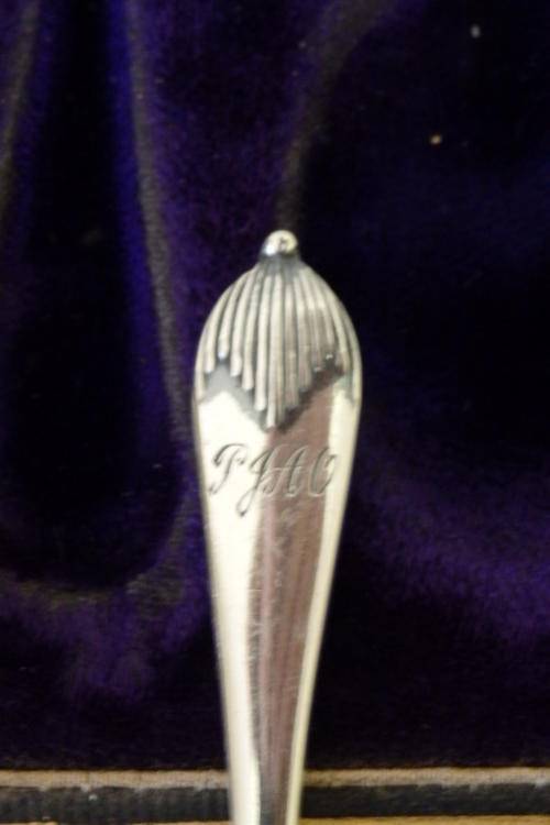AN INCREDIBLE BOXED SET OF SIX ANTIQUE (1908) HALLMARKED STERLING SILVER TEASPOONS